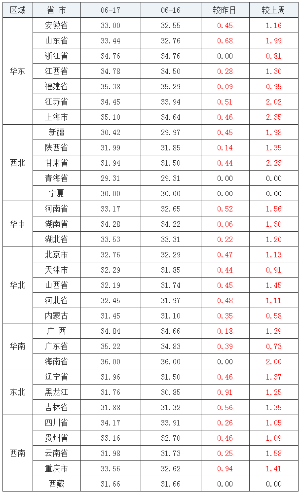 从“全国猪价排行榜”来看,今日猪价排名靠前的省份今日价格基本都有明显上涨,排名前五的省份与昨日又有些许不同,上海市今日猪价上涨了0.46元/公斤,以35.10元/公斤的价格直接跨进第4,之前一直稳居前列的浙江猪价,今日暂时没有明显变化,排名跌至第7!