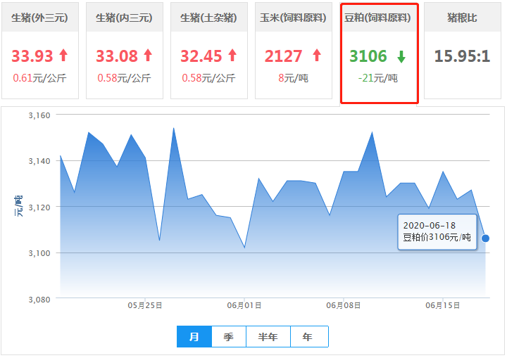 豆粕均价(饲料原料)前十:新疆维吾尔自治区3473元/吨、上海市3369元/吨、江西省3267元/吨、甘肃省3263元/吨、吉林省3211元/吨、云南省3210元/吨、湖北省3203元/吨、海南省3193元/吨、陕西省3181元/吨、内蒙古自治区3176元/吨;