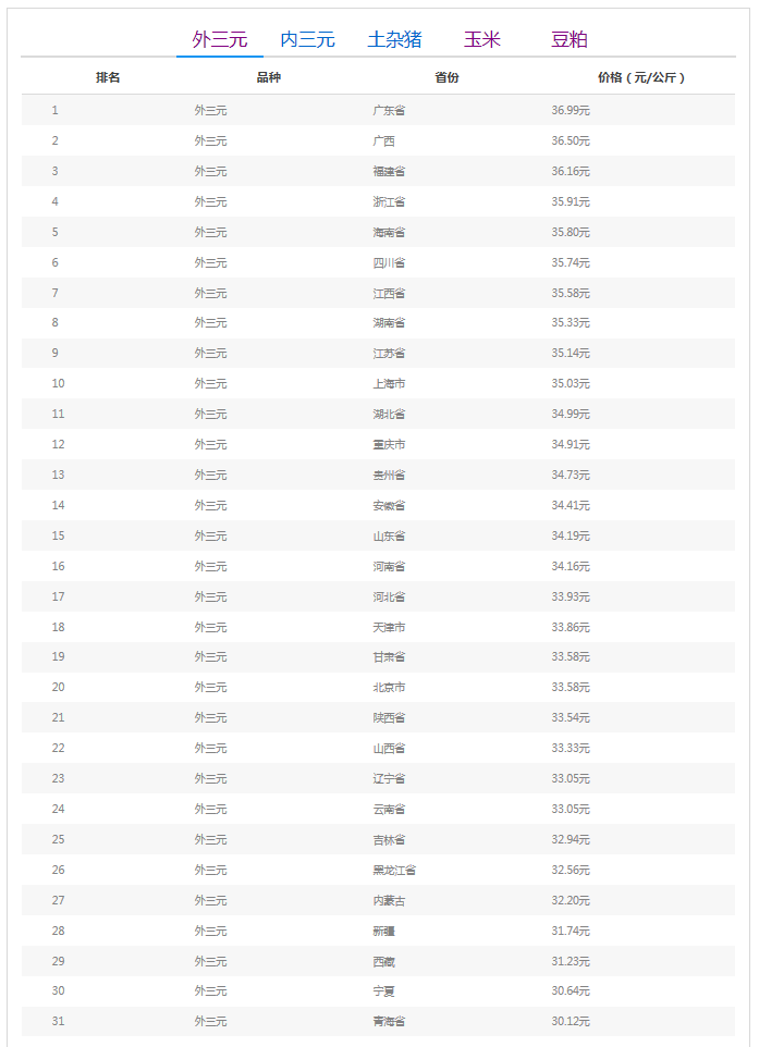全国外三元均价涨跌表