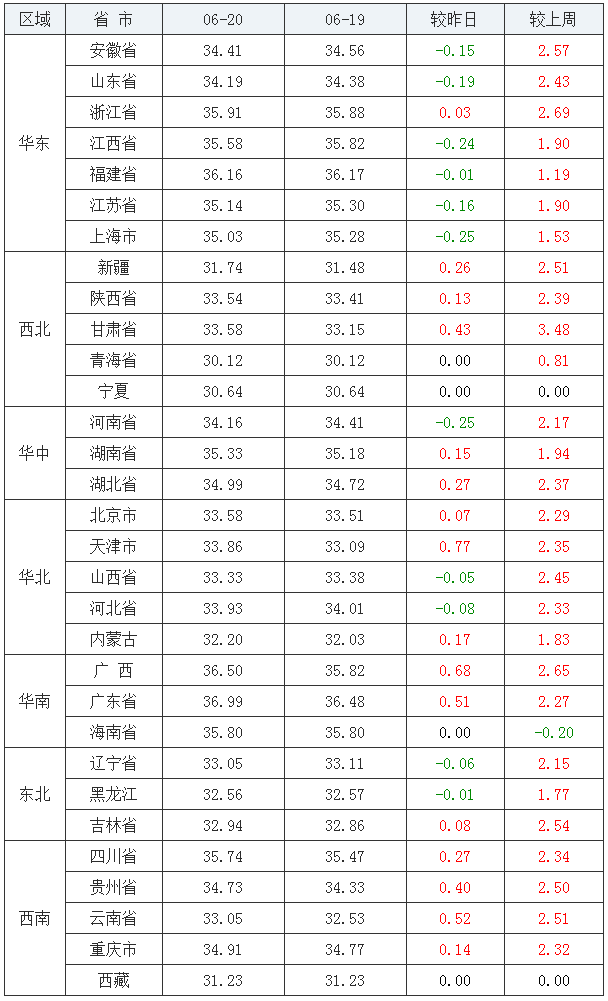 全国外三元走势(2020/06/20)