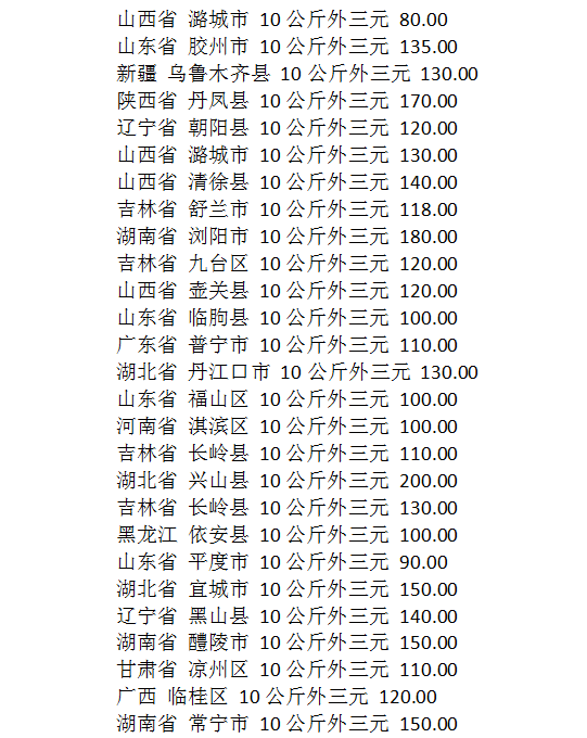 10公斤外三元仔猪(单位:元/公斤)