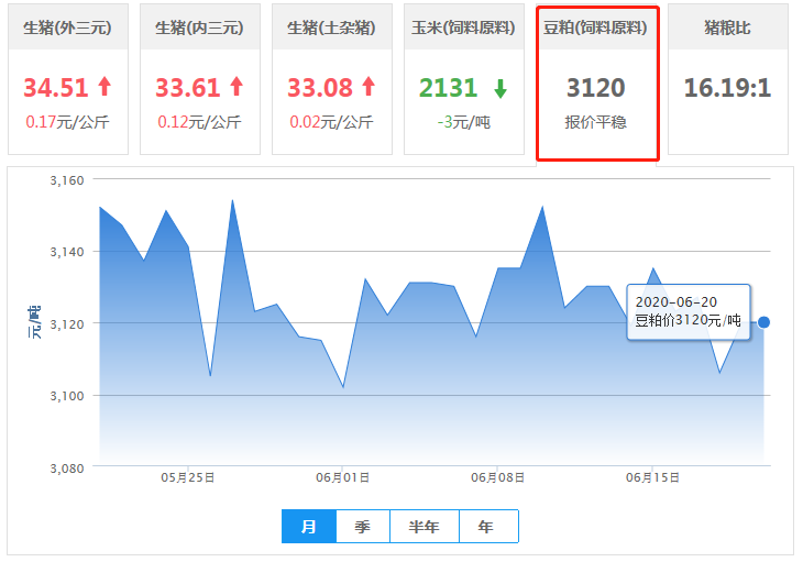 全国豆粕均价(2020/06/20)