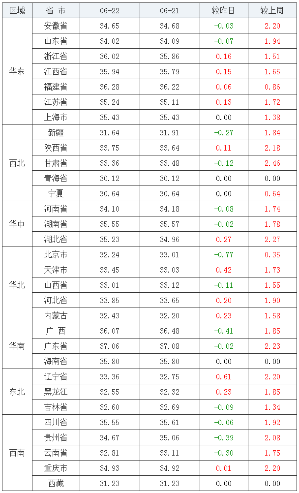 全国外三元走势(2020/06/22)