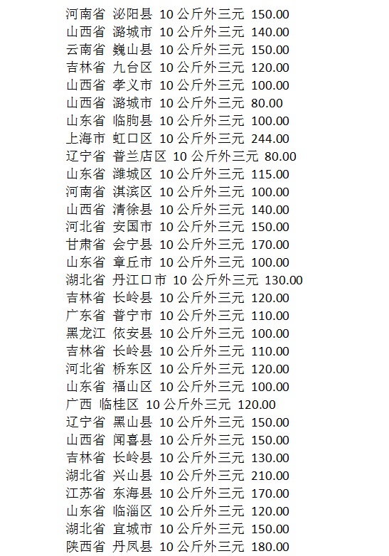 10公斤外三元仔猪(单位:元/公斤)