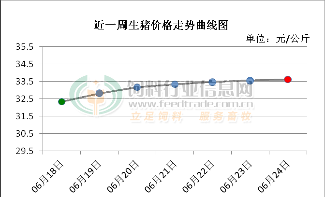 1. 主流市场外三元大猪全国销售均价33.62元每公斤,相比昨天上涨0.06%;