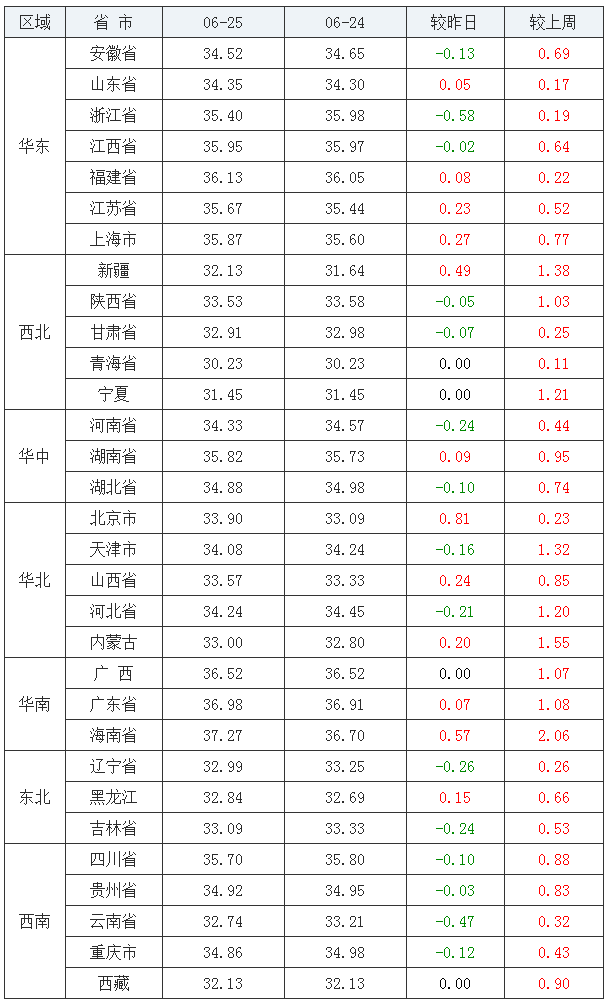 今日我国猪价下跌省份数量较昨日有所增加,昨日我国共有11省猪价下跌,今日共有15省猪价下跌,有4个省份“加入”了猪价下跌队伍!从“全国外三元均价涨跌表”来看,不难发现,今日我国猪价下跌省份主要集中在南方地区,其中西南地区基本全面飘绿,仅剩西藏猪价持稳,其余4省猪价均为下跌走势!