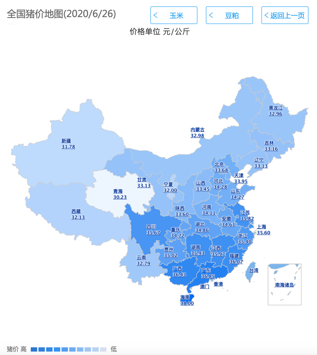活猪价格排名后五的地区:青海省、新疆维吾尔自治区、宁夏回族自治区、西藏自治区、云南省。