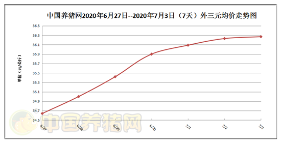 中国养猪网2020年6月27日-7月3日(7天)外三元均价走势图