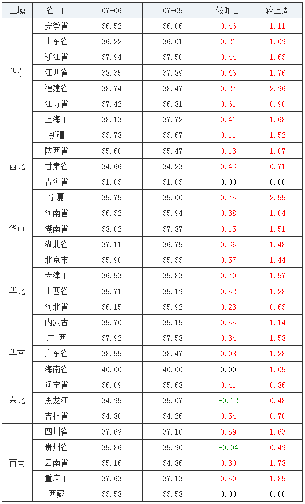 从“外三元猪价涨跌表”来看,国内生猪均价再度回归一周前的“悦色”呈大范围上涨趋势,7大区几乎均呈涨势,跌势仅在西南的贵州省、东北的黑龙江省有出现,且未起到任何实际作用。目前生猪供给正处低谷,供给对猪价具有较强的支撑,而下游消费端走货难度较大又导致屠企的亏损。从今日屠宰企业采购难度来看,屠宰企业采购难度依旧较大,天气因素影响有所加重生猪采购难度,短期猪价或易涨难跌。