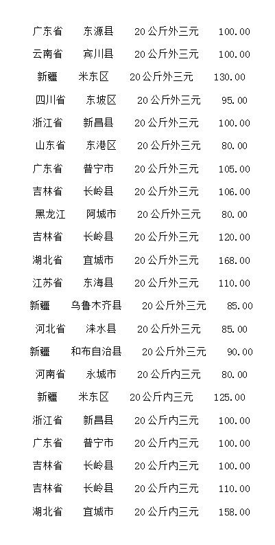 (单位:元/公斤)