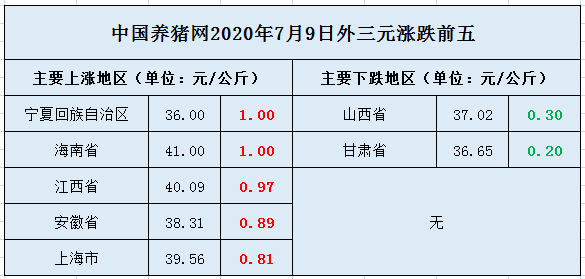 从“外三元猪价涨跌表”来看,今日全国生猪均价依旧在保持着其近两日的疯狂暴涨,虽国内生猪均价涨幅不大,但各省份涨幅创近日最高。整体来看,近日均价依旧呈涨势,但下跌地区不该忽视,两地均集中在北方,北方地区屠企出现了一定的降价现象,南方地区屠企有一定程度补涨。7月生猪供给偏紧依旧,生猪整体存栏较少,加上华储网今天发布《2020年7月10日中央储备冻猪肉投放竞价交易有关事项的通知》,将竞价交易2万吨,储备冻肉对猪价存在一定打击,预计近期猪价或止涨企稳,高价区或有小幅回调可能。