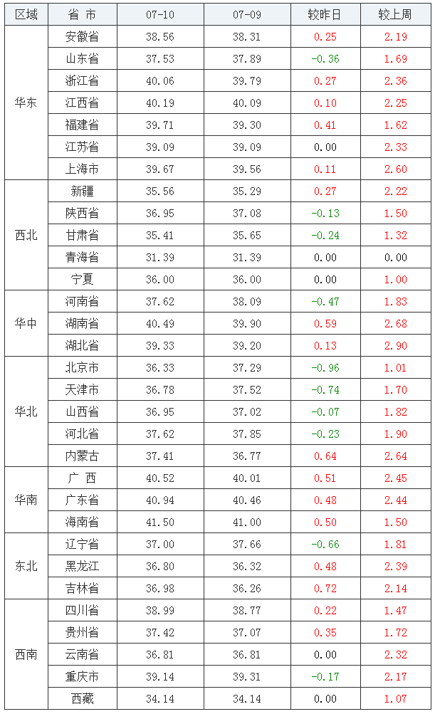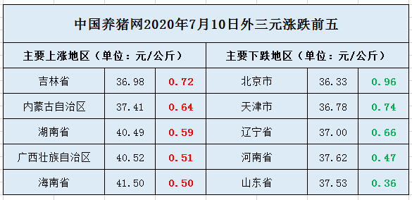 全国外三元走势(2020/07/10)