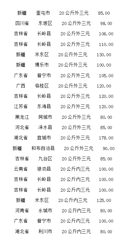 (单位:元/公斤)