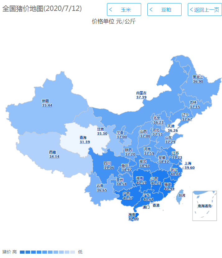 活猪价格排名后五的地区:青海省、西藏自治区、甘肃省、新疆维吾尔自治区、北京市。
