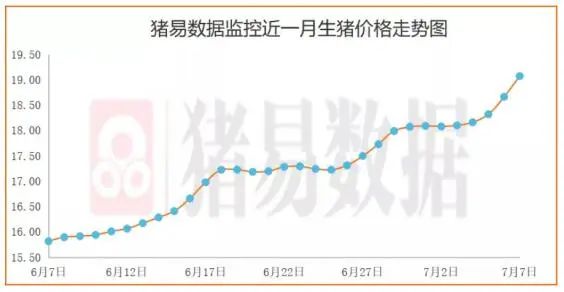 7月初,猪价再现上涨。据猪易数据监测数据显示,2020年7月07日全国标准体重生猪平均价格为38.15元/公斤,较昨日价格上涨0.83元/公斤,涨幅为2.22%;较19年同期17.35元/公斤上涨20.80元/公斤,涨幅为119.88%。