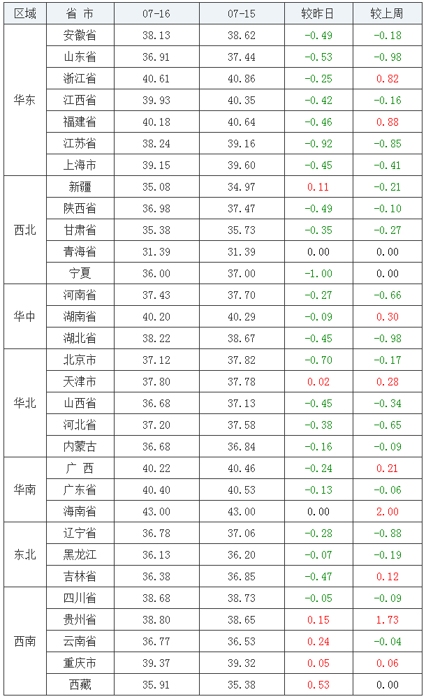 从“全国外三元生猪均价排行榜”来看,今日我国猪价最高水平仍是43.00元/公斤,但猪价水平在“40元”以上的省份数量已经有减少的趋势,今日仅有6省猪价坚挺价位,江西省今日跌下高位,目前在“39元”水平上运行!