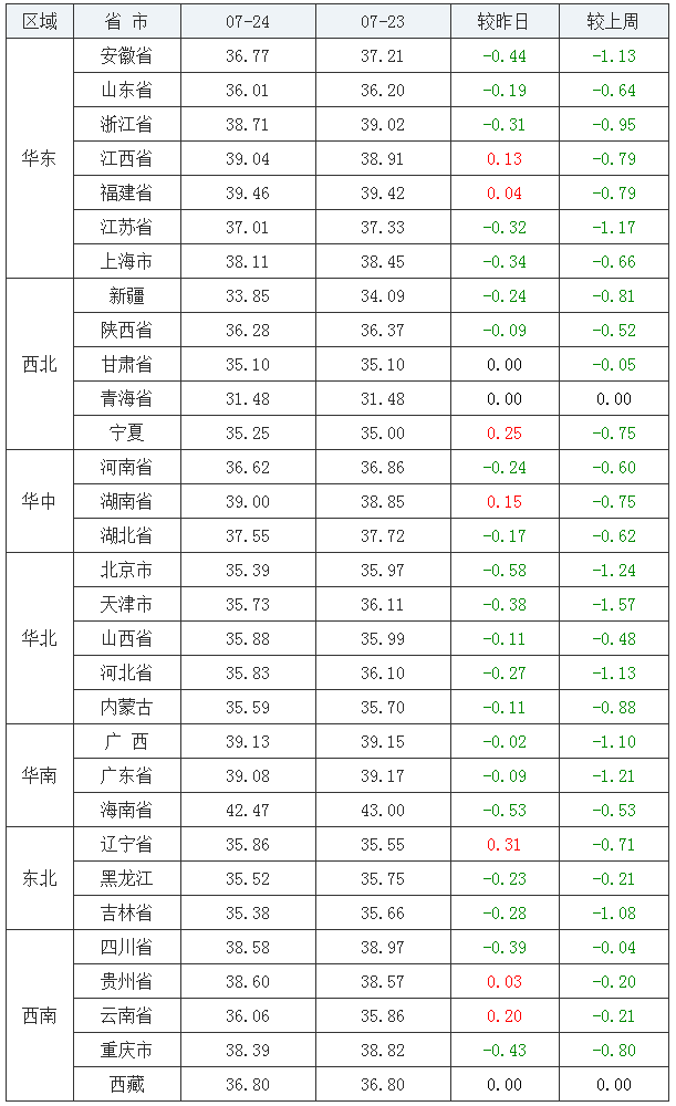 7月以来,我国外三元生猪价格呈现出“先涨后跌”的行情走势,猪价涨势逐渐走低,多地开始迎来涨跌互现的行情。目前猪价水平已经在“37元”水平线上平徘徊,不出意外明日就将正式跌破!全国猪市暂时挥别普涨,全面下调大概率上是本月主基调!