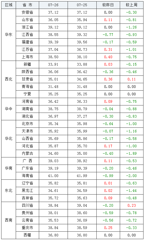 全国外三元走势(2020/07/26)