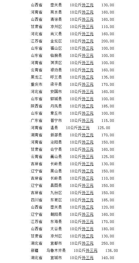 10公斤外三元仔猪(单位:元/公斤)