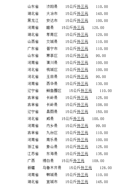 15公斤外三元仔猪(单位:元/公斤)