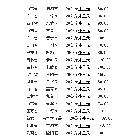 20公斤外三元仔猪(单位:元/公斤)