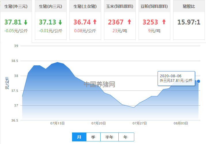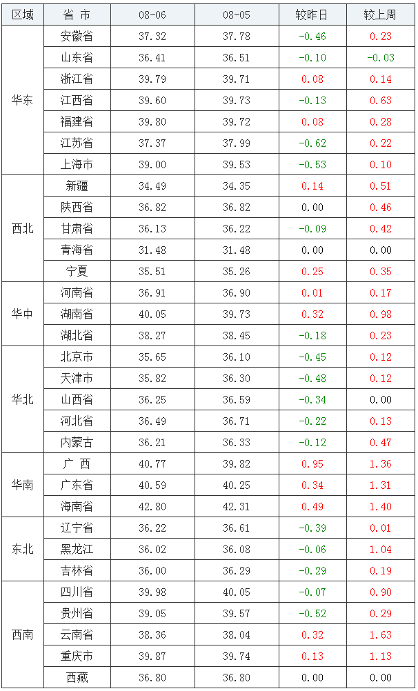 内三元排行前五地区:海南省42.00元/公斤、四川省39.54元/公斤、湖南省39.38元/公斤、广东省39.27元/公斤、浙江省39.25元/公斤。