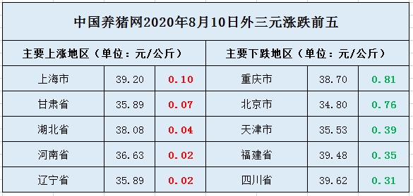 土杂猪排行前五地区:海南省41.48元/公斤、广东省39.18元/公斤、贵州省39.05元/公斤、福建省38.93元/公斤、浙江省38.60元/公斤。