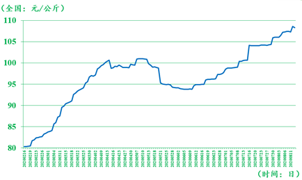 受生猪价格回升影响,近期二元母猪价格攀升至75元/公斤,市售仔猪价格攀升至108元/公斤的高位。