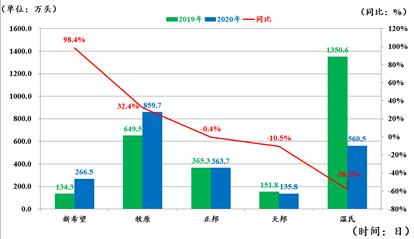 上市公司报表显示,2020年1~7月份,新希望、六和生猪的出栏量同比上升了98.4%;牧原出栏量同比上升了32.4%;正邦同比持平。