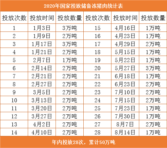 如图所示,截至8月14日,是国家年内28次投放储备冻猪肉,累计达50万吨,近期几乎是一周投放一次,短期对市场产生利空影响,消息面影响较大,长期来看,由于投放量占总消费量的比例较小,影响微弱。