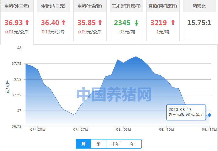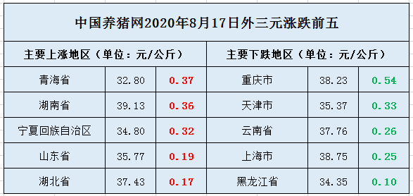 湖北省:生猪(外三元)均价37.43元/公斤,较昨日上涨0.17元/公斤;