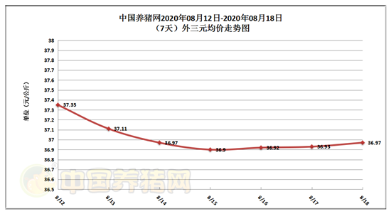 中国养猪网2020年08月12日-08月18日(7天)外三元均价走势图
