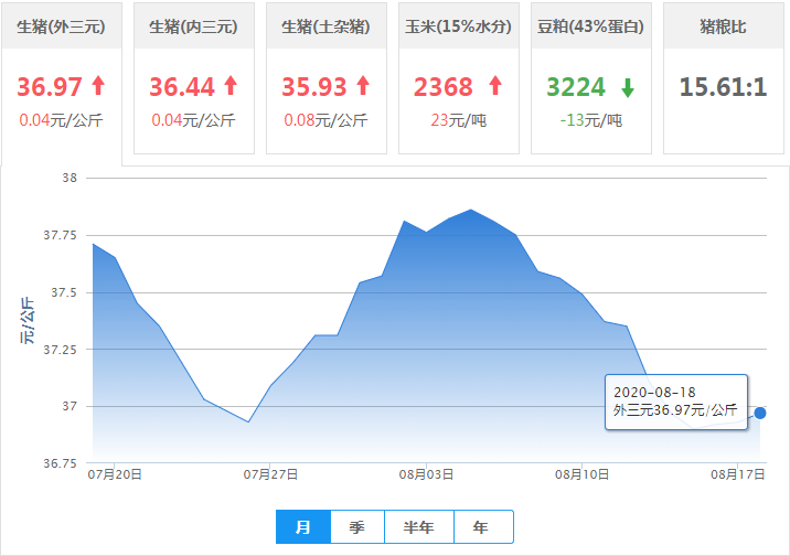 内三元排行前五地区:海南省42.00元/公斤、贵州省40.00元/公斤、广东省38.64元/公斤、四川省38.45元/公斤、福建省38.26元/公斤