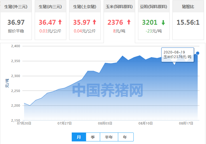 陕西省:生猪(外三元)均价36.22元/公斤,较昨日上涨0.11元/公斤;