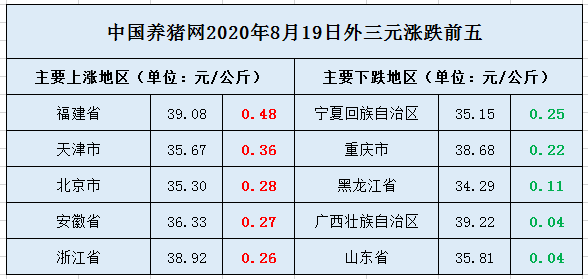 外三元排行前五地区:海南省41.56元/公斤、广东省39.67元/公斤、广西壮族自治区39.22元/公斤、四川省39.18元/公斤、福建省39.08元/公斤。