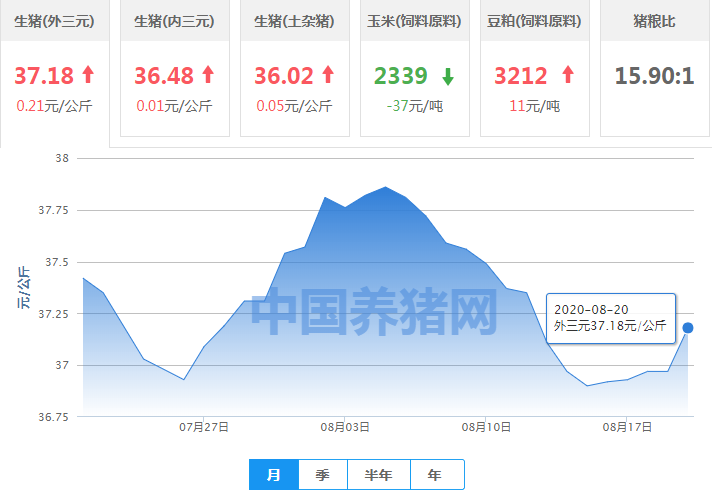 山西省:生猪(外三元)均价35.99元/公斤,较昨日上涨0.30元/公斤。