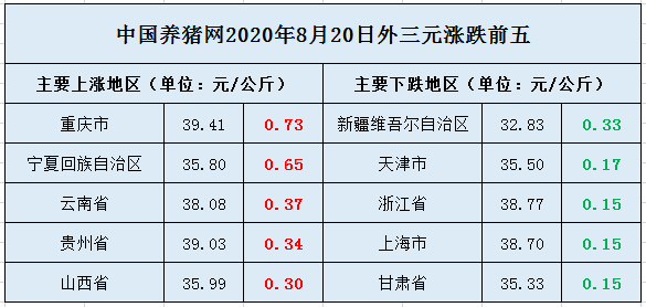 外三元排行前五地区:海南省41.56元/公斤、广东省39.70元/公斤、重庆市39.41元/公斤、广西省39.39元/公斤、四川省39.36元/公斤。