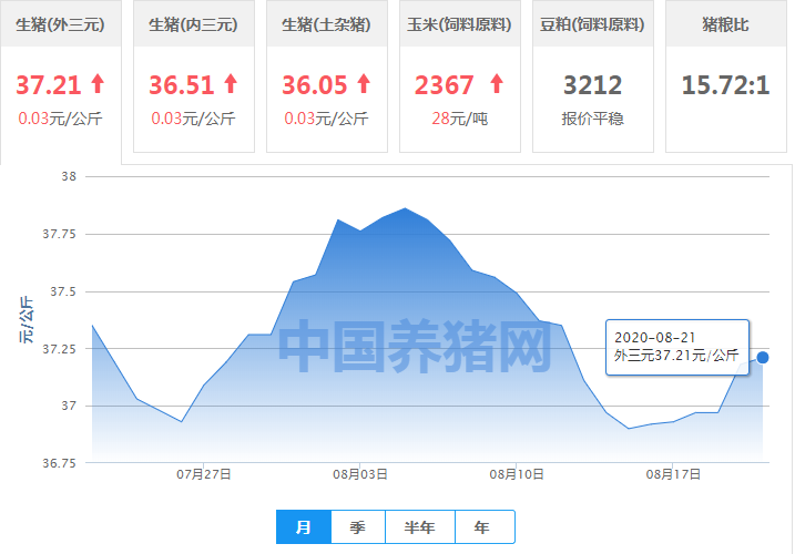 江苏省:生猪(外三元)均价37.11元/公斤,较昨日上涨0.22元/公斤;