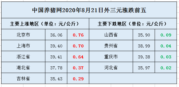 (外三元)猪价最高与最低省份