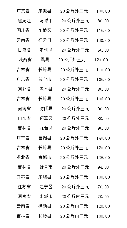 内三元排行前五地区:海南省41.52元/公斤、贵州省39.86元/公斤、重庆市39.45元/公斤、四川省39.35元/公斤、广东省39.08元/公斤