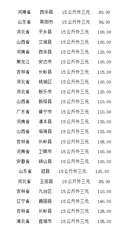 东北地区涨幅范围在0.04-0.16元/公斤之间;