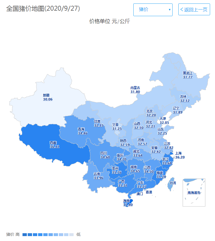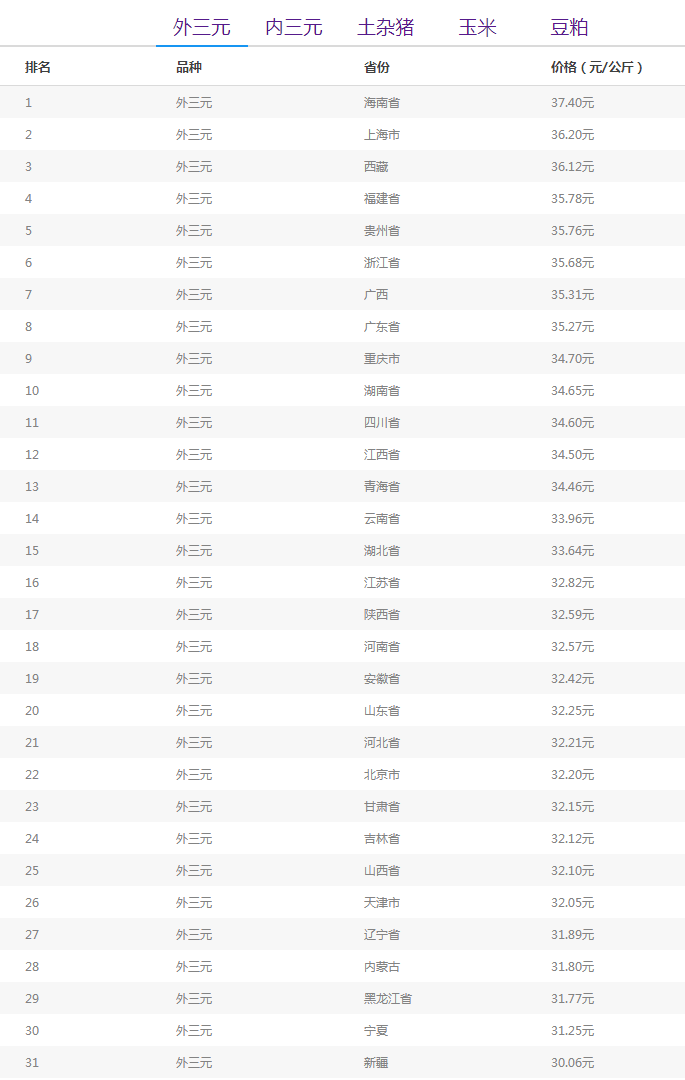 活猪价格排名前五的地区:海南省、上海市、西藏自治区、福建省、贵州省。