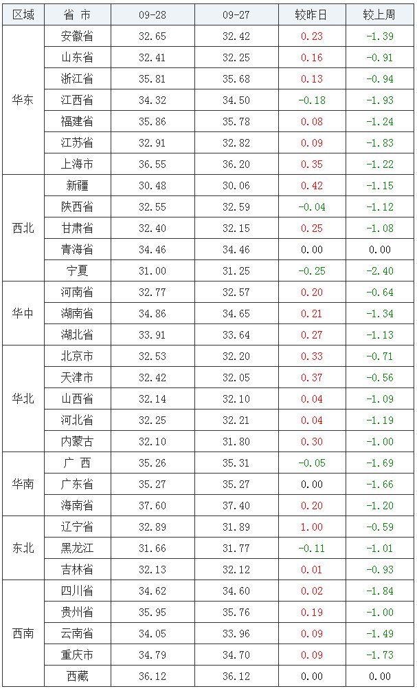 全国外三元走势(2020/09/28)