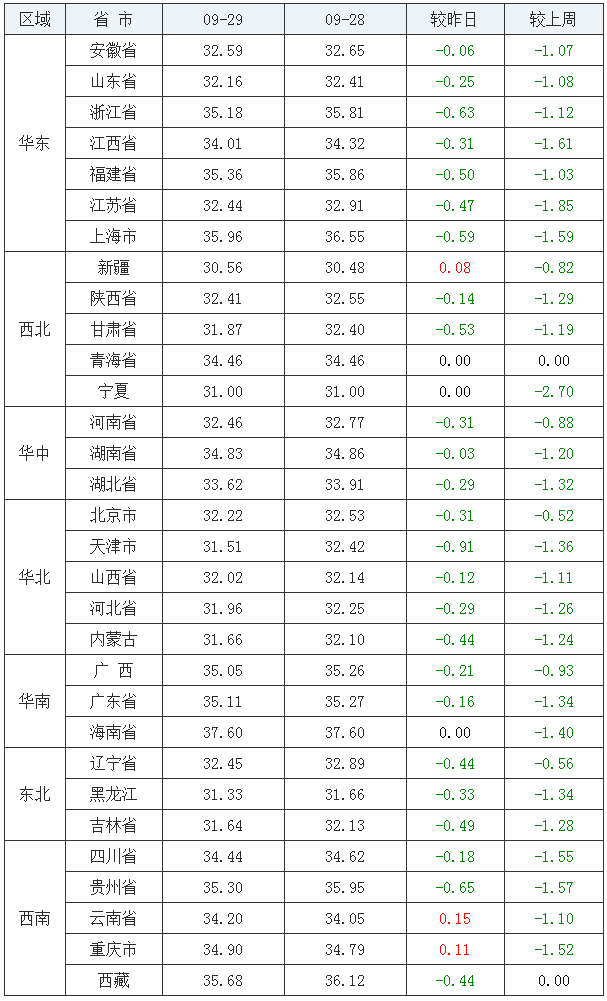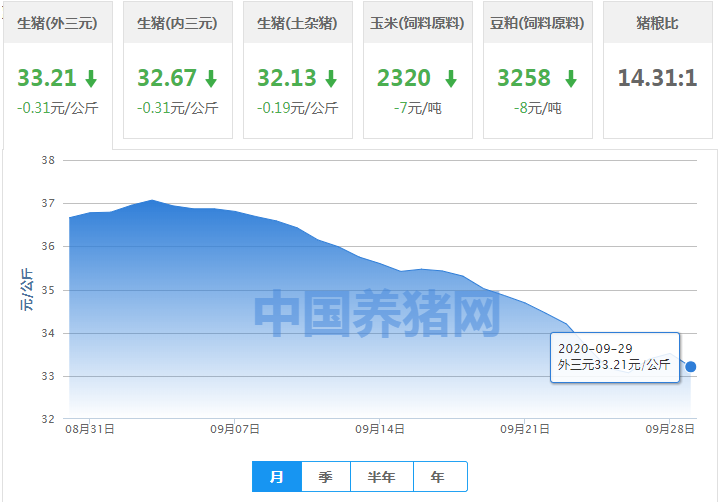 全国外三元走势(2020/09/29)