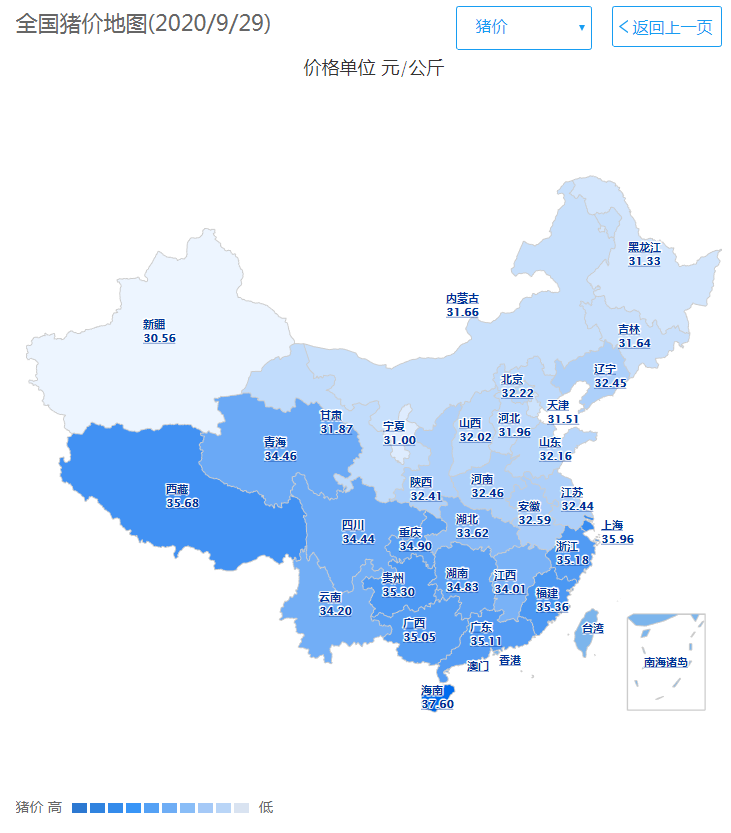 今日全国猪价地图