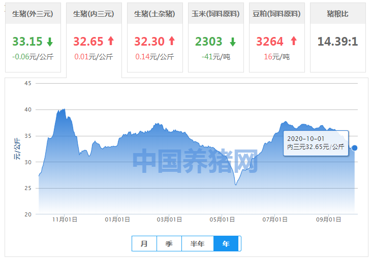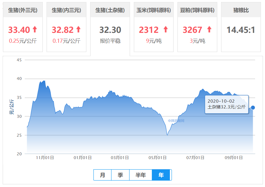 2020年10月02日全国内三元均价走势图