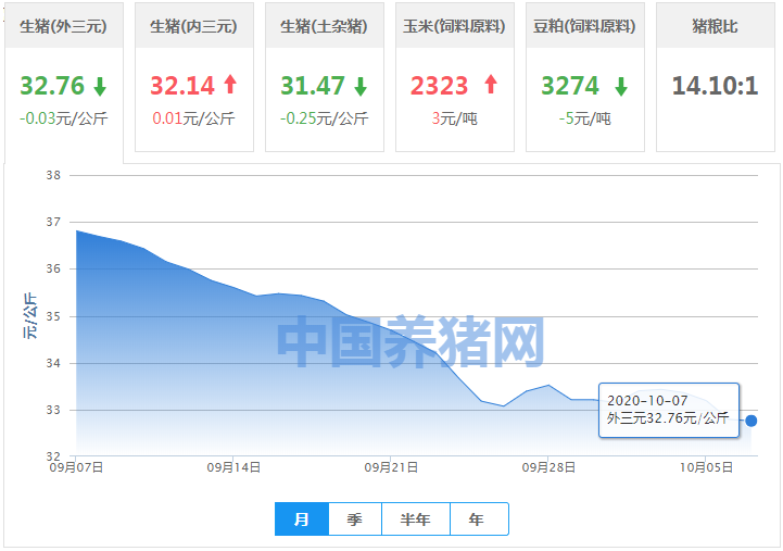 2020年10月07日全国内三元均价走势图