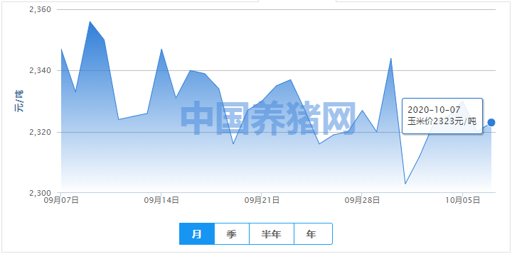 2020年10月07日全国玉米均价走势图