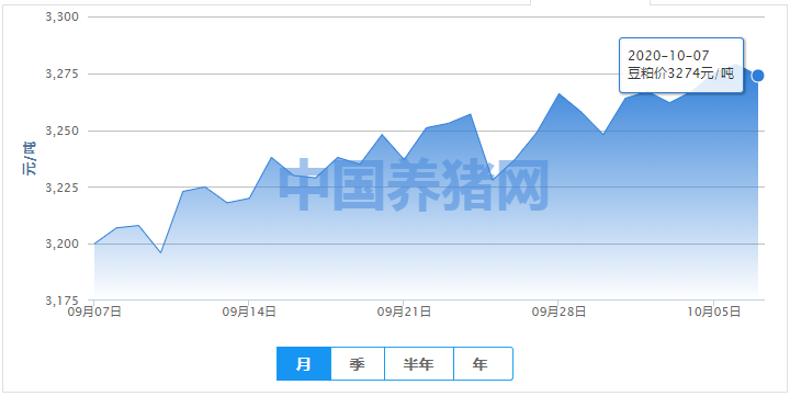 2020年10月07日全国豆粕均价走势图