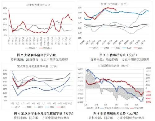我们看到,去年11月时,能繁母猪的各项生产性能无论是分娩率还是窝均健仔数,都属于较差的水平,按照出栏时间推算,正常情况下应该会对5月后生猪出栏的数量造成一定程度影响,但因为二次育肥的存在,导致供给压力后移,这一批猪出栏时间被延长至7月下旬,也就是说5-6月出栏的肥猪反应的不是6个月前的产能,而是至少8个半月前的产能。肥猪消化速度尽管缓慢,但从未停止。预计7月生猪出栏均重继续下降,出栏数量上供给压力逐月递减。逻辑上三季度关注供给,四季度关注消费,整体来看年内现货的低点已经显现。但需要提示的是,上述指标的下滑仅仅是环比的变化,在整体产能恢复仍然高于去年同期水平的背景下,我们认为现货暂时不具备大涨大跌的条件。